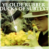 Description: Fraser and rubber ducks, text: ye olde rubber ducks of subtext